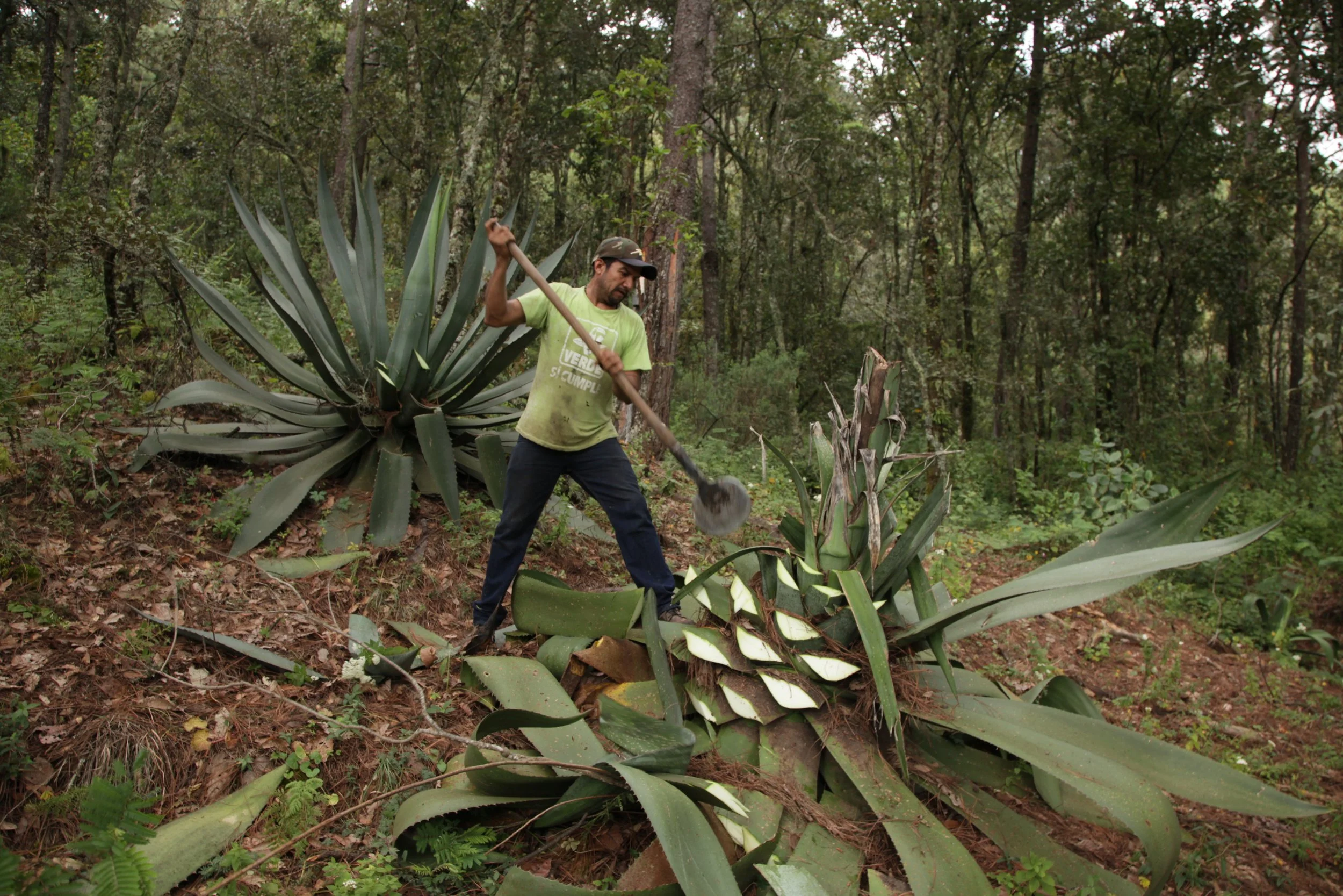Oliverio Pérez harvesting a wild agave in Morelia, Michoacán. Photo: Gabriela Alvarez