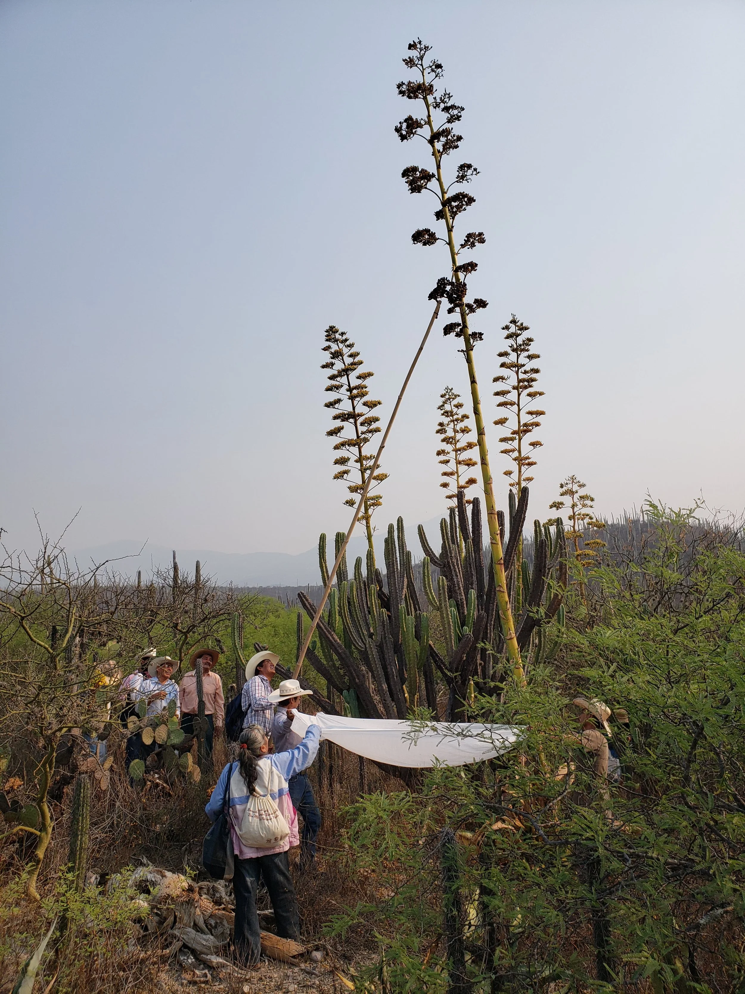 Transdisciplinary meeting in the field for the collection and selection of Agave marmorata seed. Selection of the best fruits.