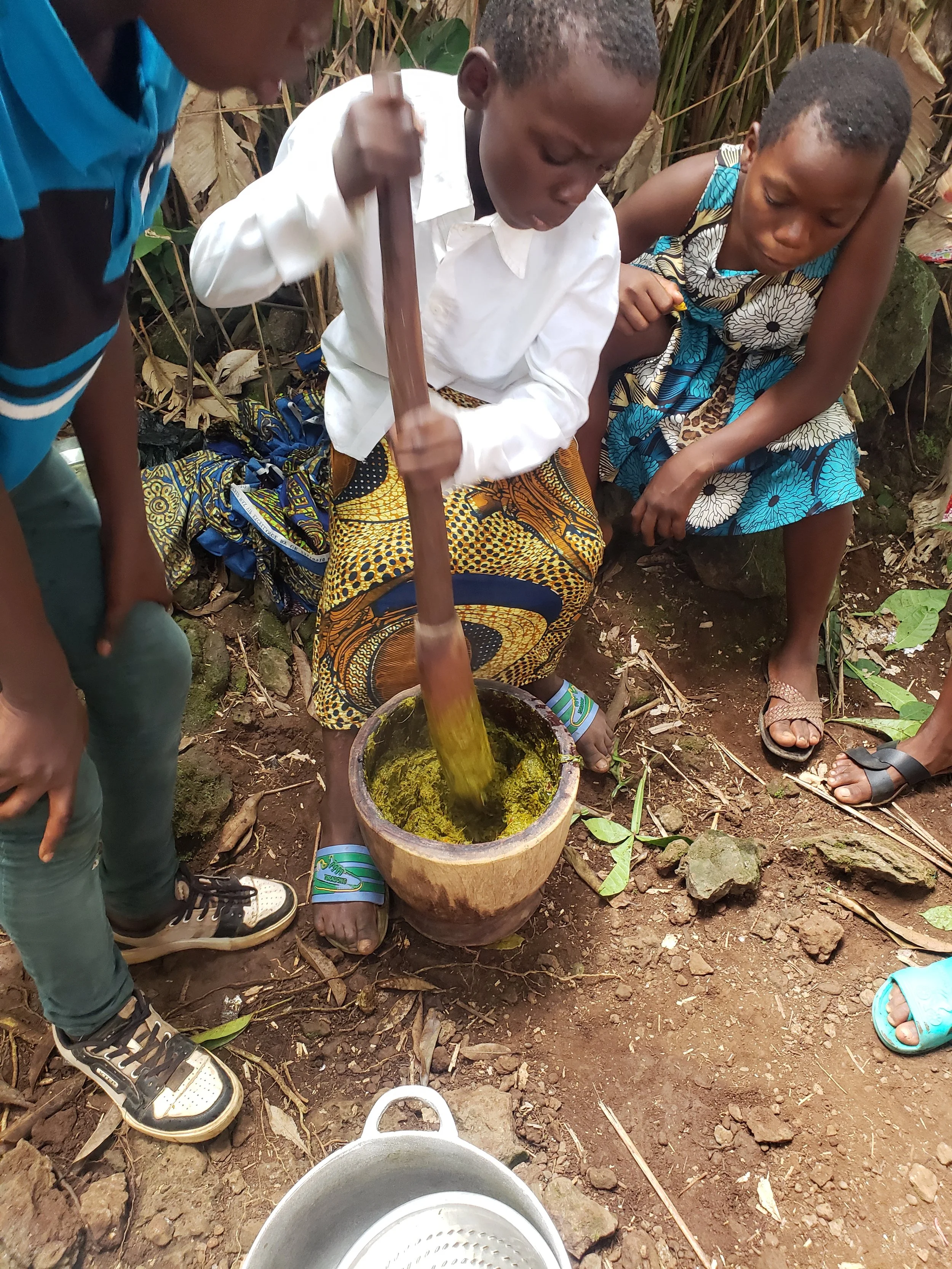 Education programs for children from the town of Limbe, including Saturday programs in the Limbe Botanic Garden focused on ecosystem and biodiversity conservation, and traditional foodways. Field trips from schools include preparation of traditional dishes from the Bakweri, Ngolo and Eyang tribes, and exploring traditional food species in the botanic garden.
